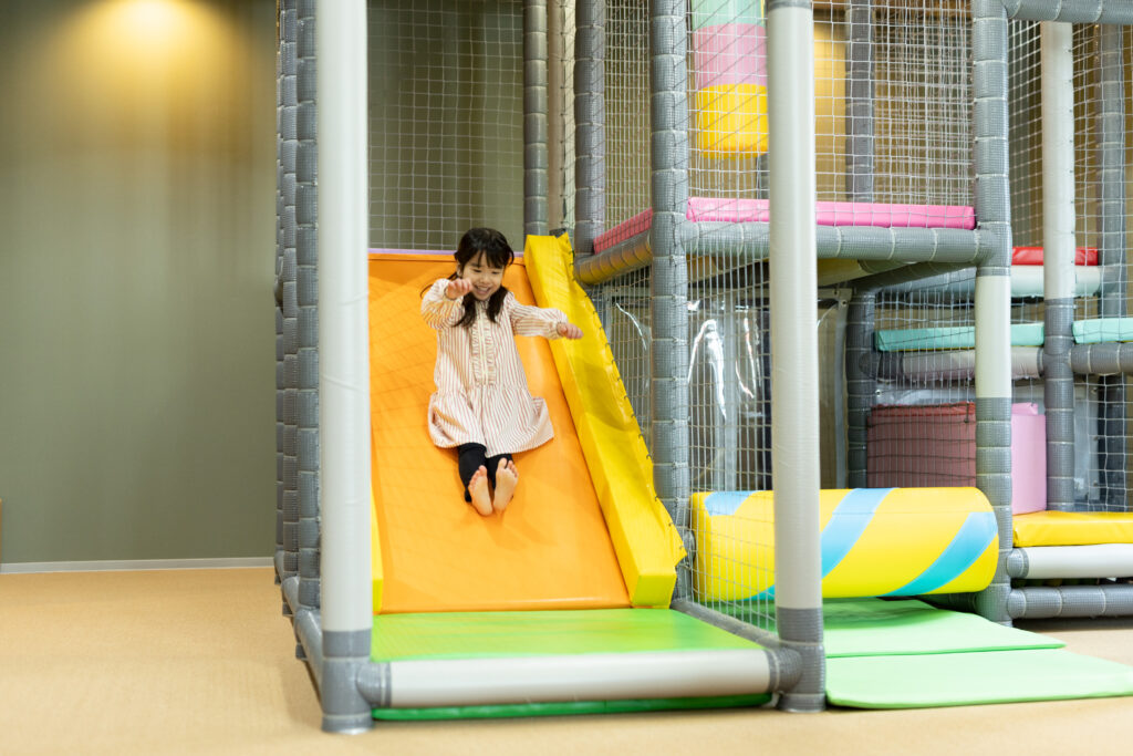 すべり台・ボールプール・パンチングバッグを備えた大型遊具を設置。遊びの舞台として大活躍するスワルカの目玉です。のぼってすべっての無限ループで楽しく体力を消耗。安全性抜群なので、公園デビュー前の赤ちゃんにもおすすめです。